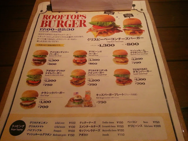 And juicy and well seasoned and scrumptious! All of the menu items are in both Japanese and English and I have been told that they are working on a completely English menu with all of the menu item's descriptions written in English too. So next time you are down at Kamakura and are craving a burger, definitely check Rooftops out! I'll be going back!