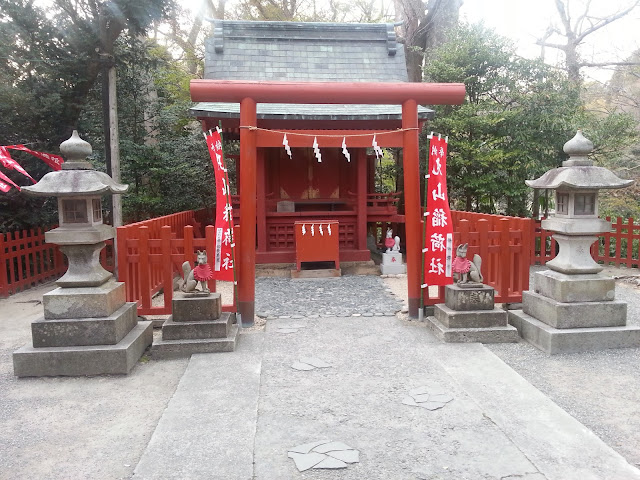The original location for this Inari Shrine was where the main Shrine is located, however, when the main shrine was moved to this location, the Inari Shrine was moved to its current location. The really interesting thing for me (and this may be quite normal, but it is the first time I have noticed it) is that Shrines for 2 different Shinto sects were located within the same Shrine grounds!