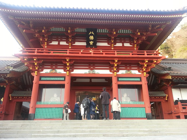 Tsurugaoka Hachimangu Shrine dates back to the year 1063 when it was built to honour the God Hachiman. Hachiman is the God of warriors and the protector of the Japanese people, and Imperial family and the country itself. He is also the God that was worshiped by most of the samurai class. If you travel around Japan you will notice a great many Hachiman Shrines as it is the second most common Shinto sect after the Inari sect which is identified by it's use of foxes as Shrine guardians. It was originally located much nearer the beach at Kamakura in the area that is now Yuigahama. It was later relocated to Kobayashi village before finally finding it's current home overlooking Kamakura at the beginning of the Kamakura period. The city of Kamakura was the capital city of Japan for all of the Kamakura period (1185 - 1333) and the Shrine became a national religious authority and an Important Cultural Property of Japan.